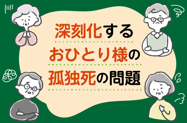 同じ"独居の高齢者"でも、子どもなどの家族がすぐ近くに住んでいる方もいれば、誰とも接点がない完全なひとり暮らしの方もいます。この「誰とも接点がない」「身近に頼れる家族がいない」という方が直面する可能性があるのが孤独死です。